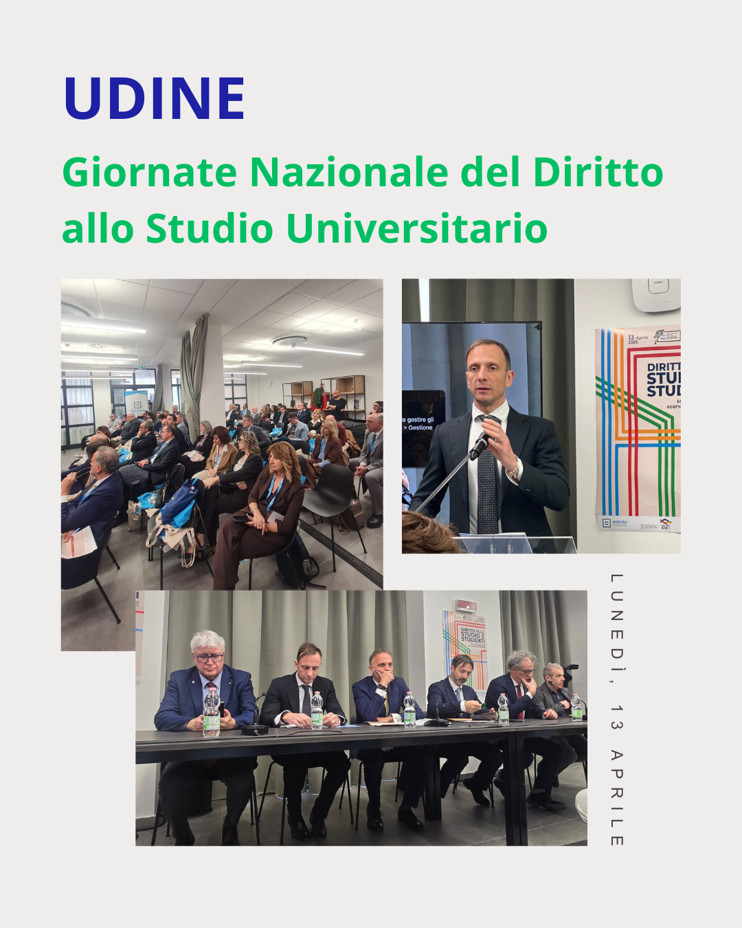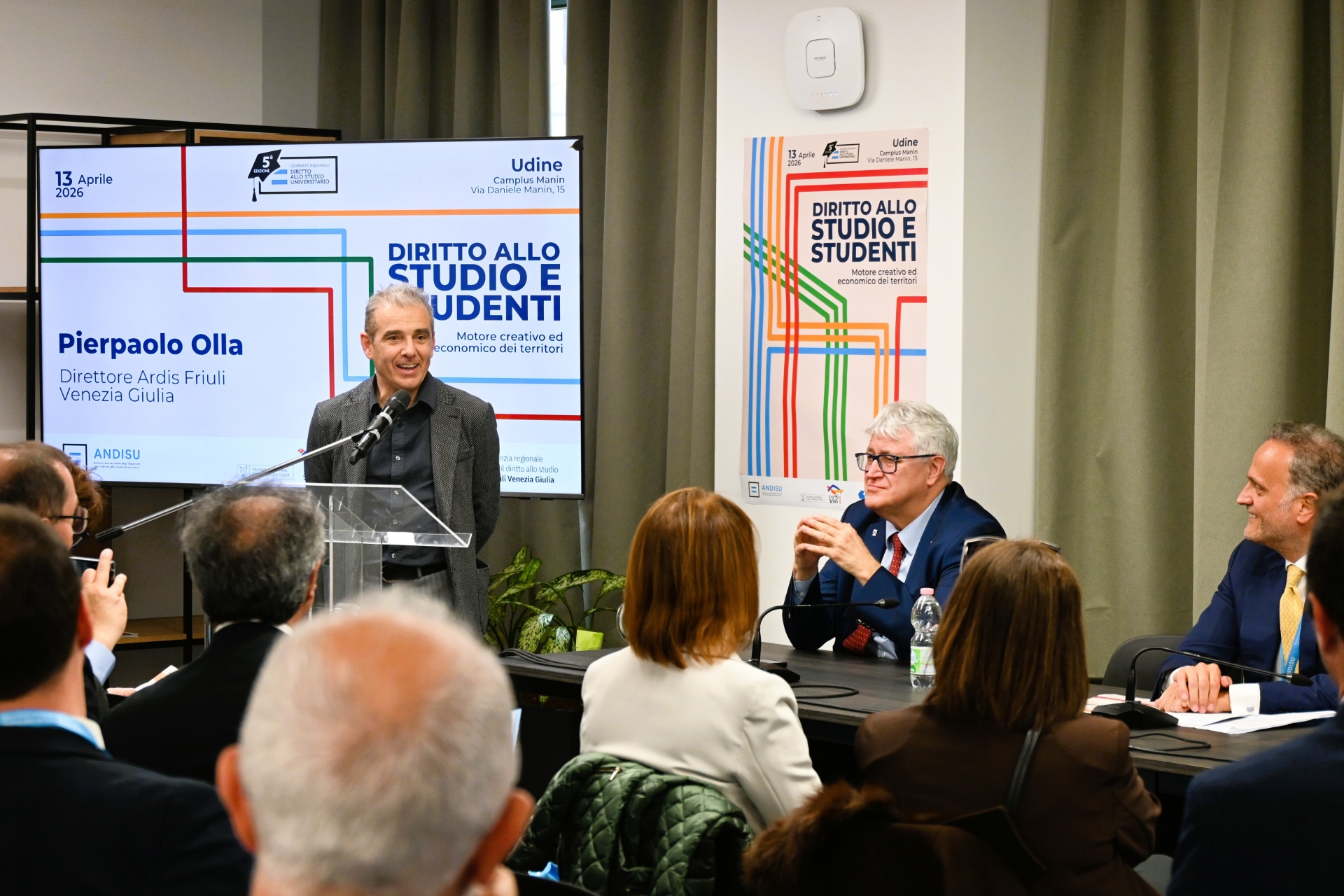 La giornata si è aperta con i saluti istituzionali di: Emilio Di Marzio, Presidente ANDISU; Pierpaolo Olla, Direttore Generale Ardis Friuli Venezia Giulia; Angelo Montanari, Magnifico Rettore Università di Udine; Alberto Felice De Toni, Sindaco Città di Udine; Massimiliano Fedriga, Presidente Regione Autonoma Friuli Venezia Giulia; Alessio Pontillo, Dirigente Ministero dell’Università e della Ricerca.